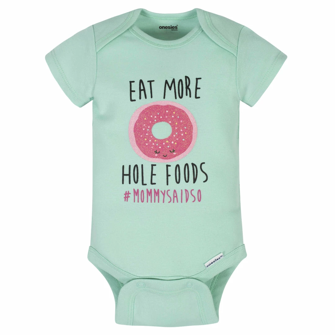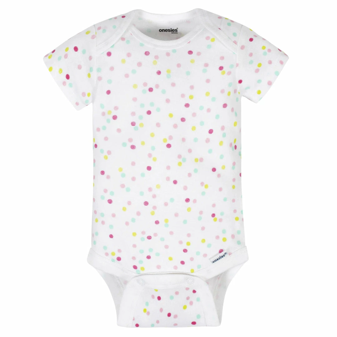 Ready to spice up baby’s wardrobe? These Onesies® Brand bodysuits are hilarious and adorable. Made with soft cotton rib, they’re super comfy as well. Each baby girl Onesies® Brand bodysuit features an expandable lap shoulder neckline which keeps wardrobe changes easy peasy. The snaps are positioned higher so that diaper changes are too. Baby bodysuits are a necessity for the first year of baby’s life because they’re so versatile. Use them to layer when it’s cold or mix and match them with baby pants, baby socks, baby caps, baby jackets, and baby leggings! Plus, each funny baby Onesies® bodysuit is machine washable because, well, life. This pack contains eight bodysuits (that’s a baby outfit for every day of the week plus one bonus!).