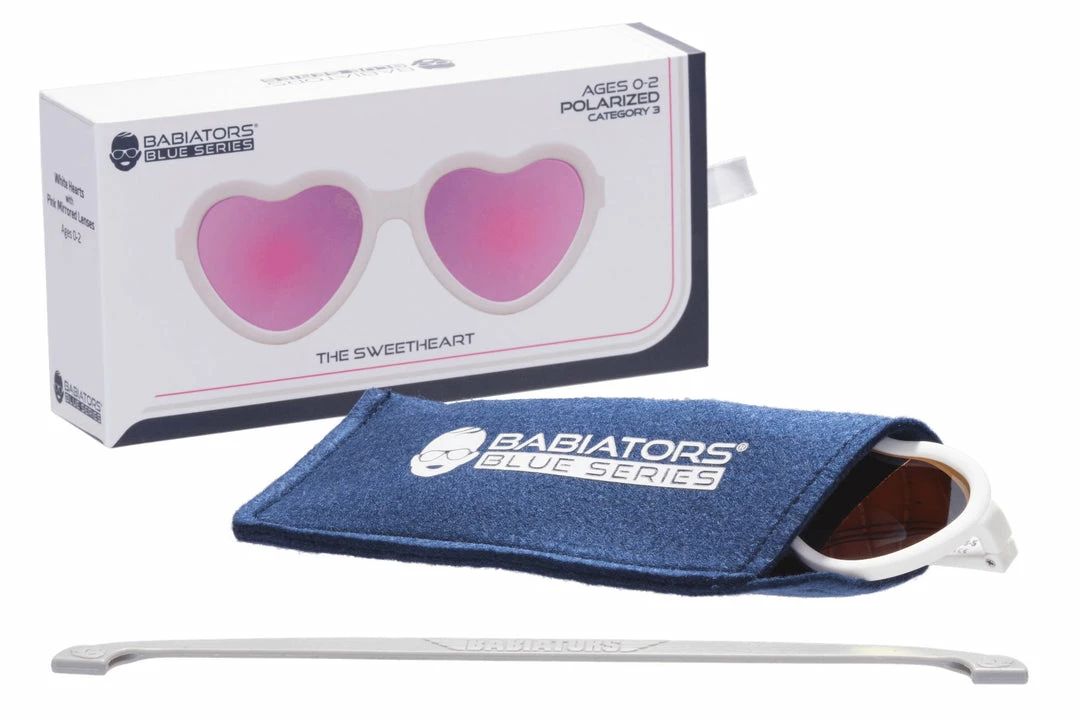 Accessorized: Blue Series sunglasses come with a slim felt case to keep those shades looking shiny and new. The 0-2Y size in this collection also come with a free silicon strap to keep those glasses in place.