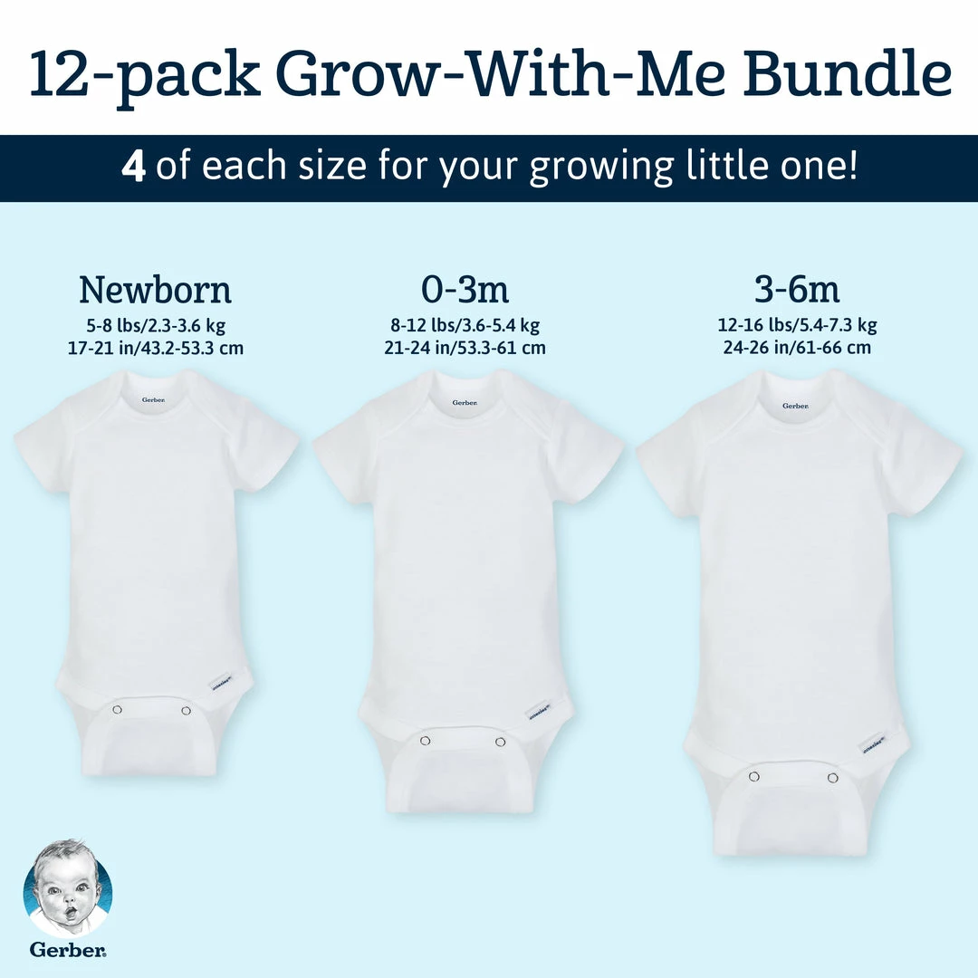 It seems like the growing never ends! Keep up with the constant need to size up with the Grow-With-Me Bundle. It has three 4-packs in sizes Newborn, 0-3 months, and 3-6 months. These short sleeve Onesies ® bodysuits are designed for easy changeability and are an excellent choice all on their own or for layering purposes. Plus, they’re organic! The baby soft fabric is OEKO-TEX certified to give you peace of mind that no harmful substances will touch your baby’s skin.