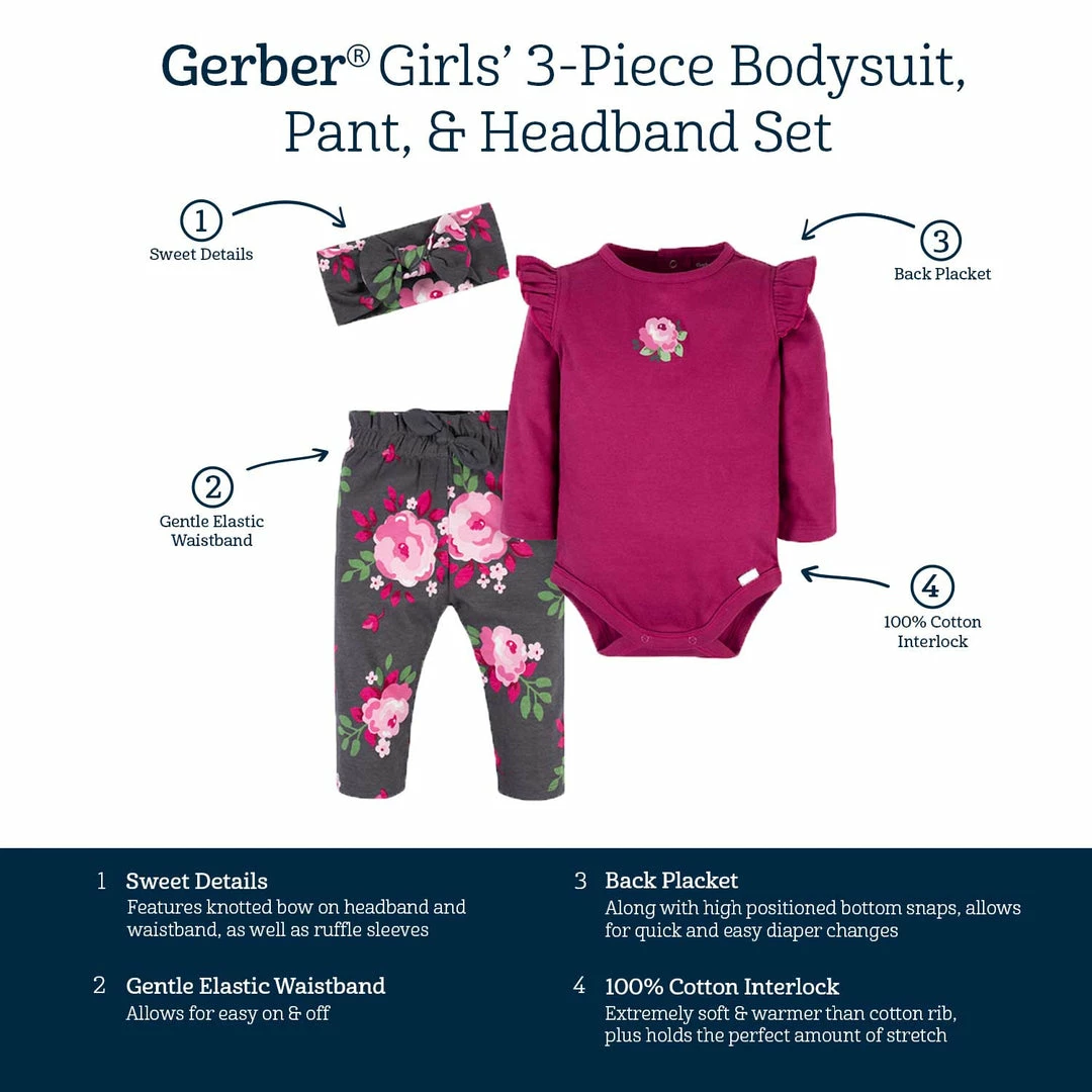 Be the first to review “Flash Sale 😍 Gerber® 3-Piece Baby 👧 Girls Burgundy Garden Onesies® Bodysuit, Pants & Headband Set See What’s New ✨” Cancel reply