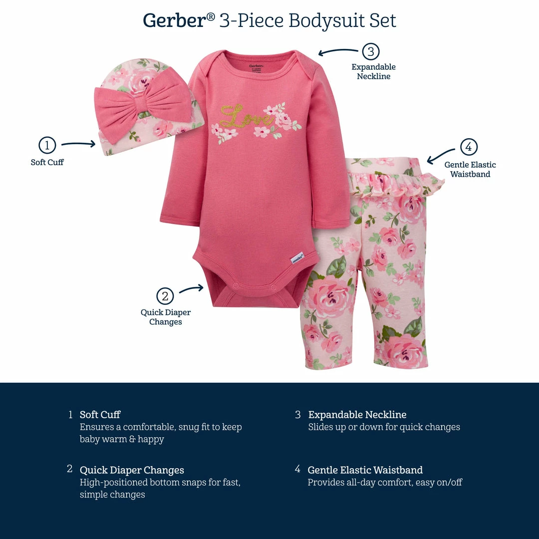 SKU: gerber-6637452525646 Categories: Baby Girl, BabyPreemie - 24M, Outfits & Sets Tags: 3-Piece Set, Collection:Baby, Collection:fallfaves, Collection:Outfits & Sets, Collection:Winter Must-Haves, Related:21F-A.COM, Sale:BLBEventBOGO50, Theme:Feelin' Floral