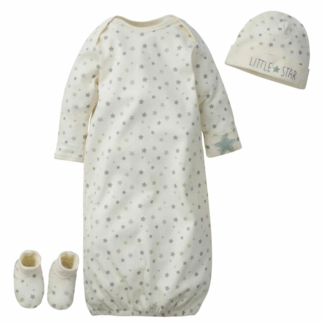 Be the first to review “Wholesale 😍 Gerber® 3-Piece Baby Little Star Organic Gown, Cap & Booties Starter Set 🧨” Cancel reply