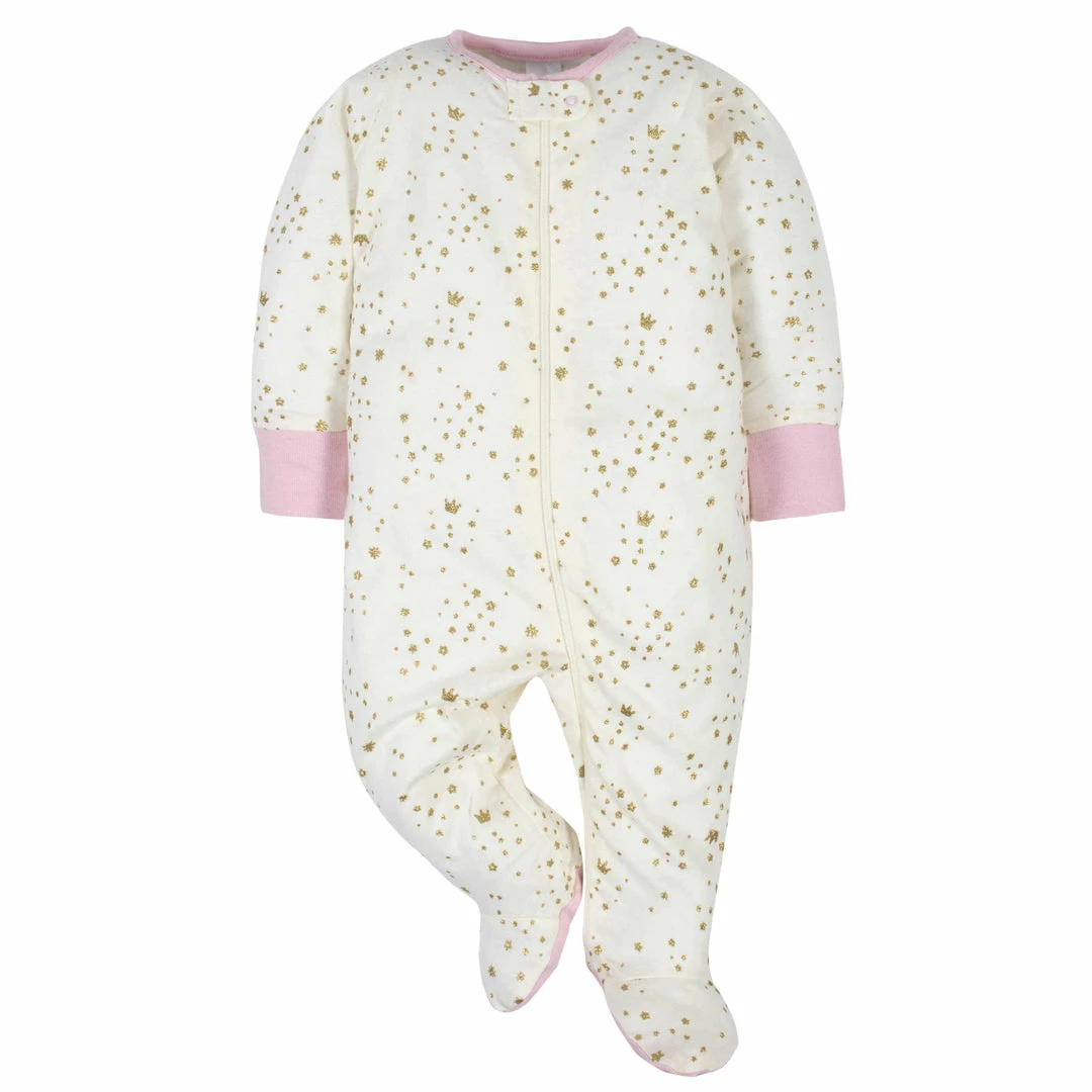 Gerber® Sleep N’ Plays are a parents’ best friend! These soft footies are made with cotton, a comfortable fabric that’s perfectly breathable to prevent irritation against baby’s delicate skin. We had this product independently certified with STANDARD 100 by OEKO-TEX® so that you don’t have to worry about harmful substances in your baby’s clothing. They’re appropriate to use as newborn footie pajamas as they’re made to comply with all safe sleep standards. Each Sleep n’ Play features a zipper down the front of the outfit to allow for easy and fast diaper changes. This zipper makes the baby sleeper incredibly easy to put on as well as to take off. Atop the zipper is a safety tab with a snap to keep the zipper held in place. These baby sleepers are footed to add extra warmth which is wonderful for sleepy time as well as if there is a chill in the air. It also means no fooling around with baby socks! Gerber® provides high-quality products that are easy and convenient for parents as well as cute and comfortable for baby.