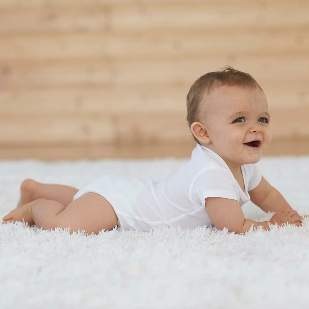 Organic 100% cotton rib fabric is the star of the show with these white short sleeve Onesies®. Perfect for the natural-minded mommy to keep her precious little one comfortable.