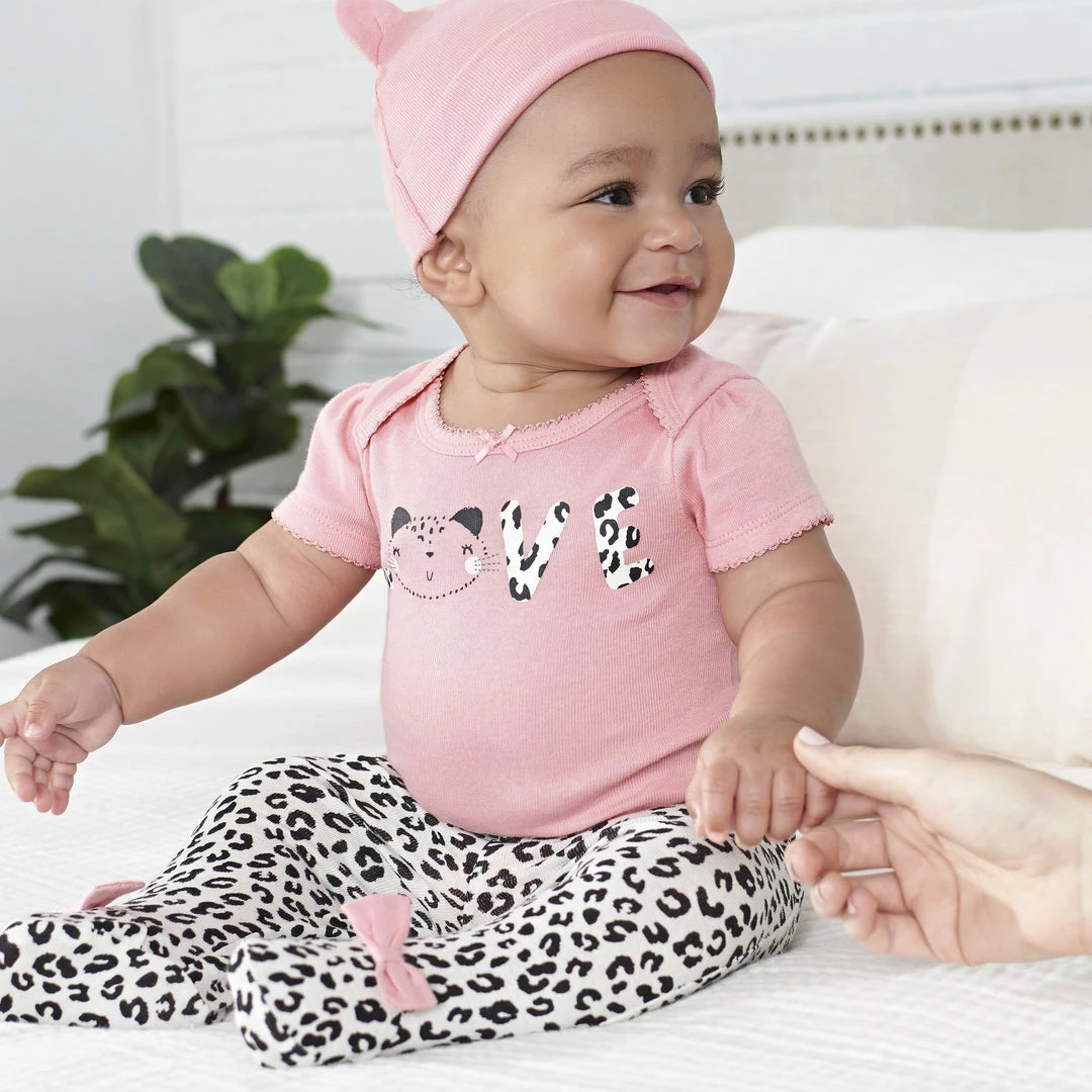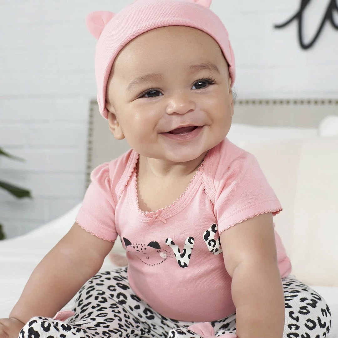 Love! Stock your little one up on the essentials with our comfy 4-piece set. We had our essentials independently certified with STANDARD 100 by OEKO-TEX® so that you don’t have to worry about harmful substances in your baby’s clothing.
