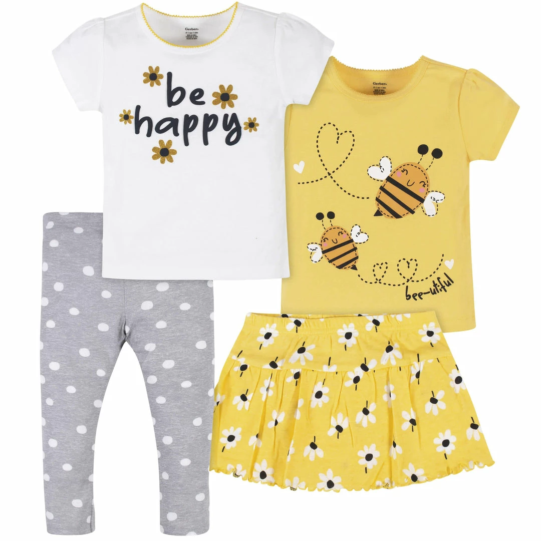 Be the first to review “Wholesale 💯 Gerber® 4-Piece Infant & Toddler 👧 Girls Bee Garden Tees, Skort & Pants Set 🤩” Cancel reply