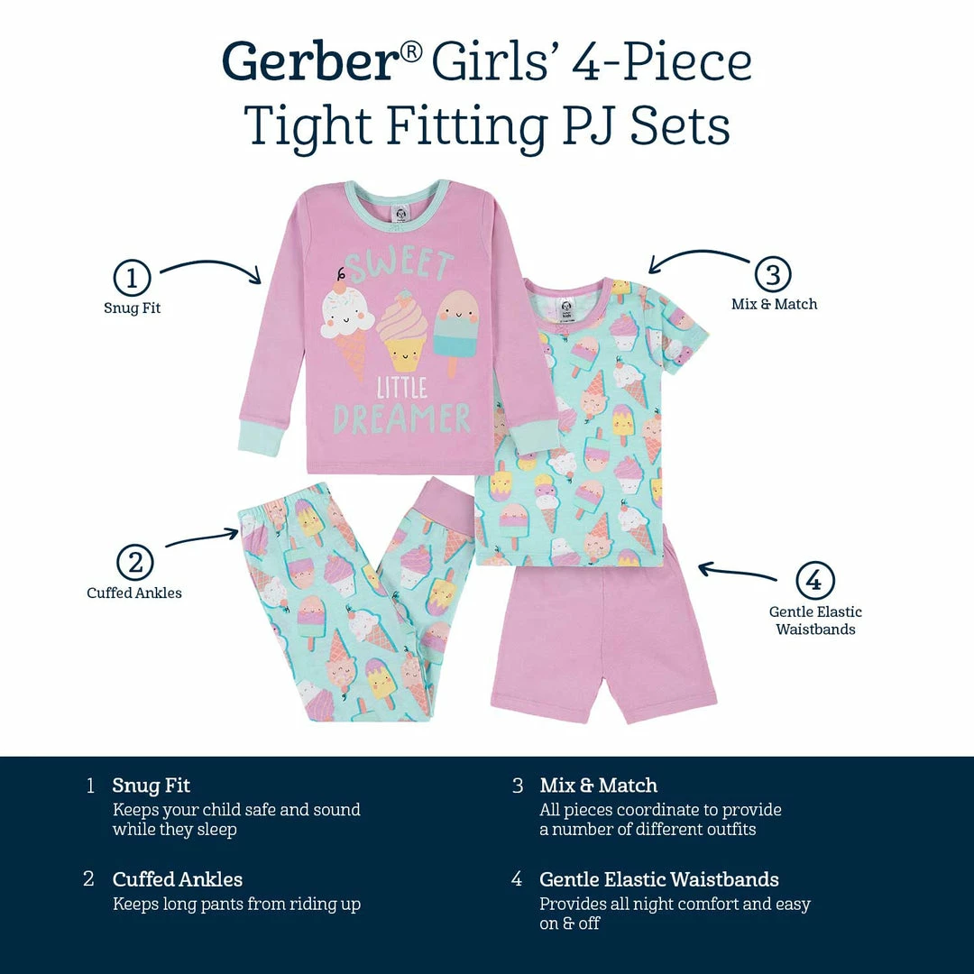 SKU: gerber-6693901598798 Categories: Baby Girl, BabyPreemie - 24M, See What's New, Sleepwear, Sleepwear, Toddler Girl, Toddler2T - 5T Tags: 4-Piece PJs, Baby girl, Email:All Sizes, Flag:new, Opp:22S-H.COM, Related:Ice Cream Dreams, Sale:BLBEventBOGO50, Toddler girl