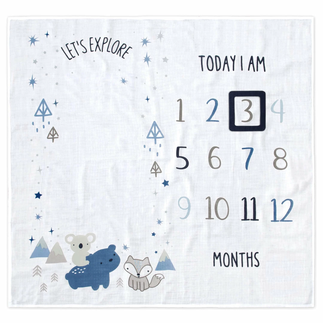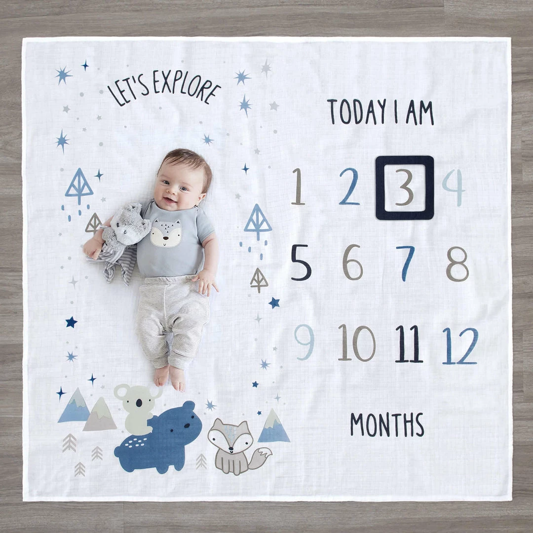 Our adorable milestone blankets are perfect for documenting your little one’s growth. Made with soft muslin, this milestone blanket is beautifully crafted so you may take lovely at-home photography. It includes a soft, moveable frame to mark each month. Pair this sweet milestone blanket with our coordinating crib sheets, changing pad covers, plush blankets, and flannel baby blankets. Plus, it makes a great baby shower gift!