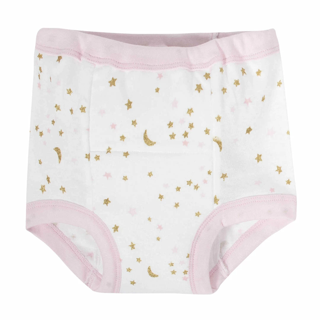 Get her ready to potty with this 4-pack of training pants! Made with a soft cotton, these training pants are comfortable and absorbent to help prevent leaks when accidents occur.