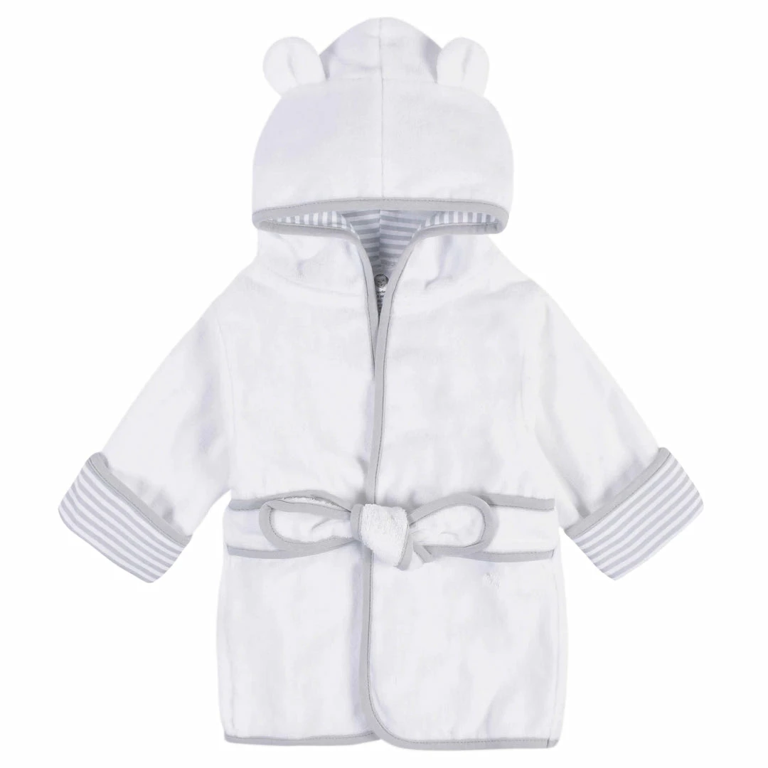 When it’s time to give your little one a bath, why not pamper them as much as you can? Our 10-piece baby boy bath set includes one snuggly hooded towel, eight soft washcloths, and one luxurious robe. Each piece is made with cotton woven velour terry, a super soft and absorbent fabric that’s perfect for gentle cleansing and drying. We had our essentials independently certified with STANDARD 100 by OEKO-TEX® so that you don’t have to worry about harmful substances in your baby’s wardrobe. Our baby towel is sized at 26″ x 30″, and our baby washcloths are sized at 9″ x 9″, the perfect size for young babies. The towel features a super snuggly hood to keep your little one warm while you dry them off before you dress them for complete comfort in our adorable baby robe. This set is perfect to give as a baby shower gift and comes packaged in a precious gift box. Each piece is machine washable.