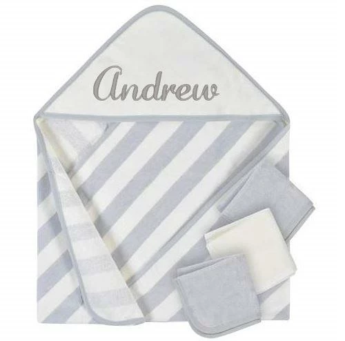 Be the first to review “Wholesale ✨ Gerber® Embroidered 4-Piece Neutral Striped Gray Hooded Towel & Washcloths Set ❤️” Cancel reply