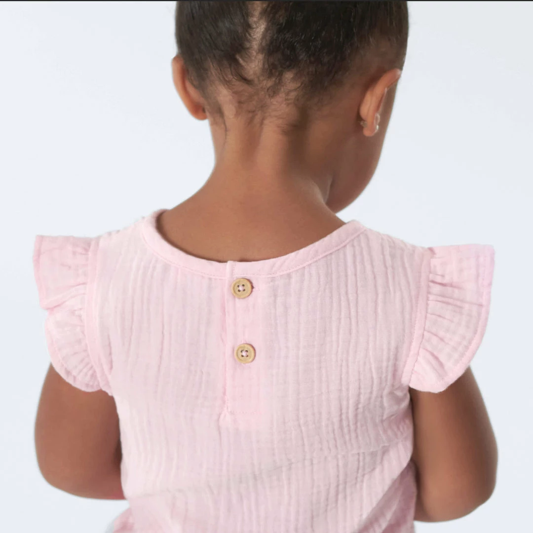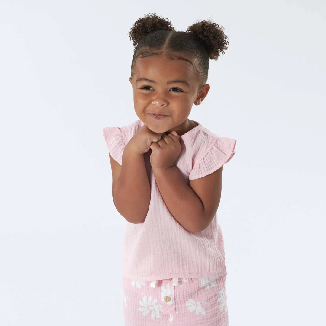 Our soft gauze flutter sleeve tops are perfect to keep your kiddo cool and comfy in warm weather. They’re perfect to pair with our gauze shorts! We had our essentials independently certified with STANDARD 100 by OEKO-TEX® so that you don’t have to worry about harmful substances in your little one’s wardrobe.
