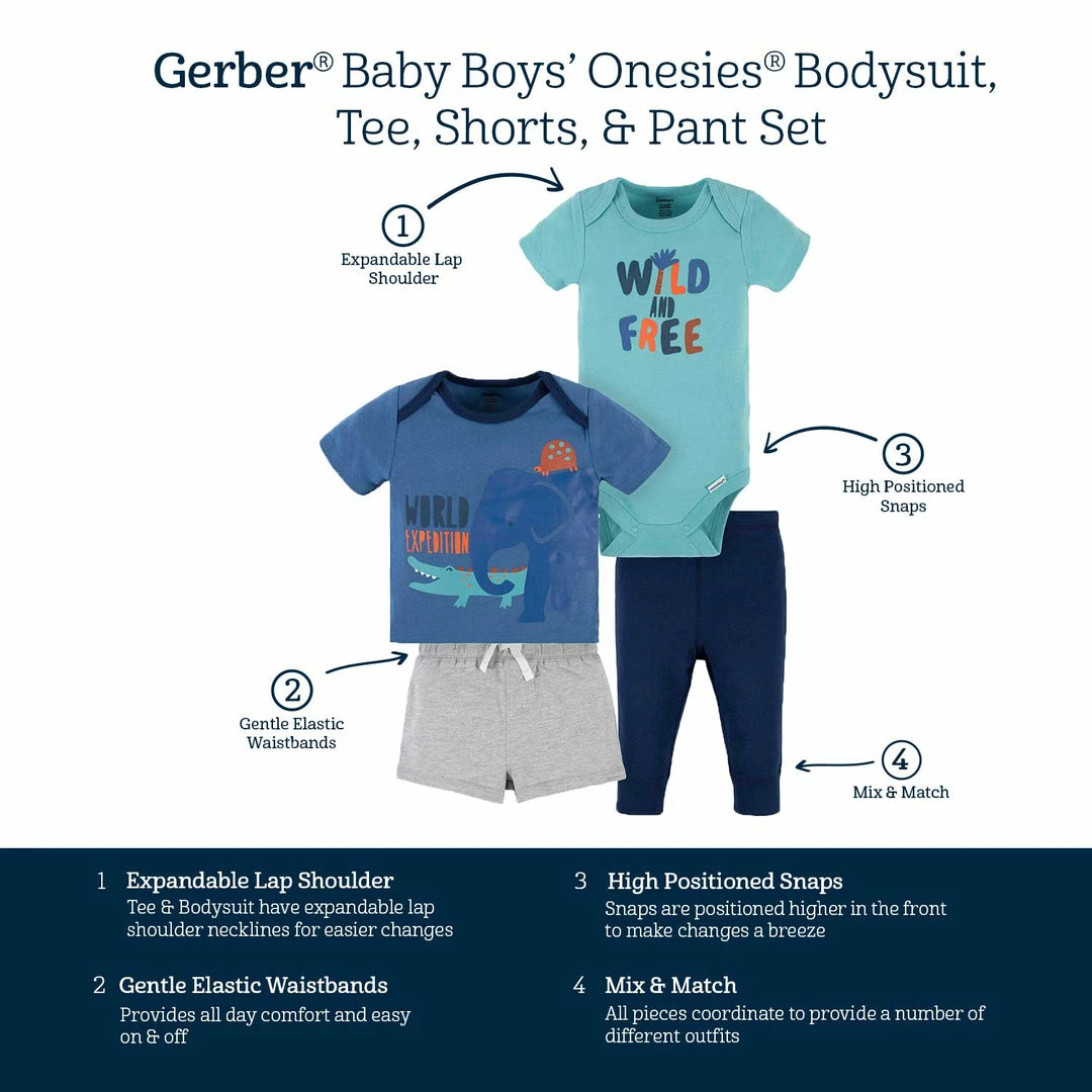 Be the first to review “Discount 🤩 Gerber® See What’s New 4-Piece Baby Boys Wild & Free Onesies® Bodysuit, Tee, Shorts & Pant Set 💯” Cancel reply