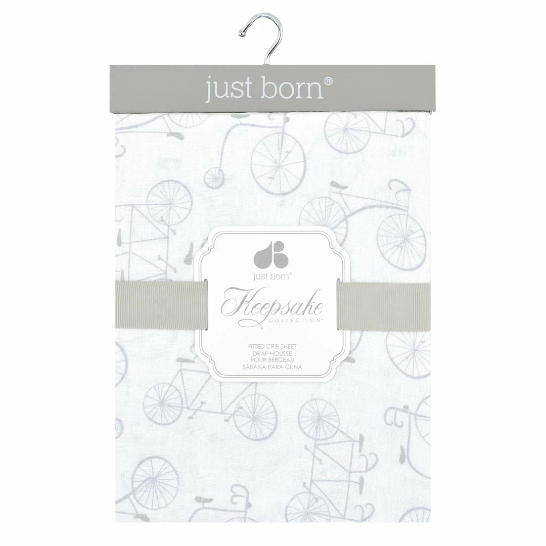 Your little one will dream peacefully on this sublimely soft crib sheet. Pure and sustainable, our gently washed woven linen is breathable, incredibly smooth and delicate on your baby’s skin. The bicycle print in ivory and gray has an heirloom appeal for every generation. Finish your baby’s crib with complementing pieces from the Keepsake Collection by Just Born®.