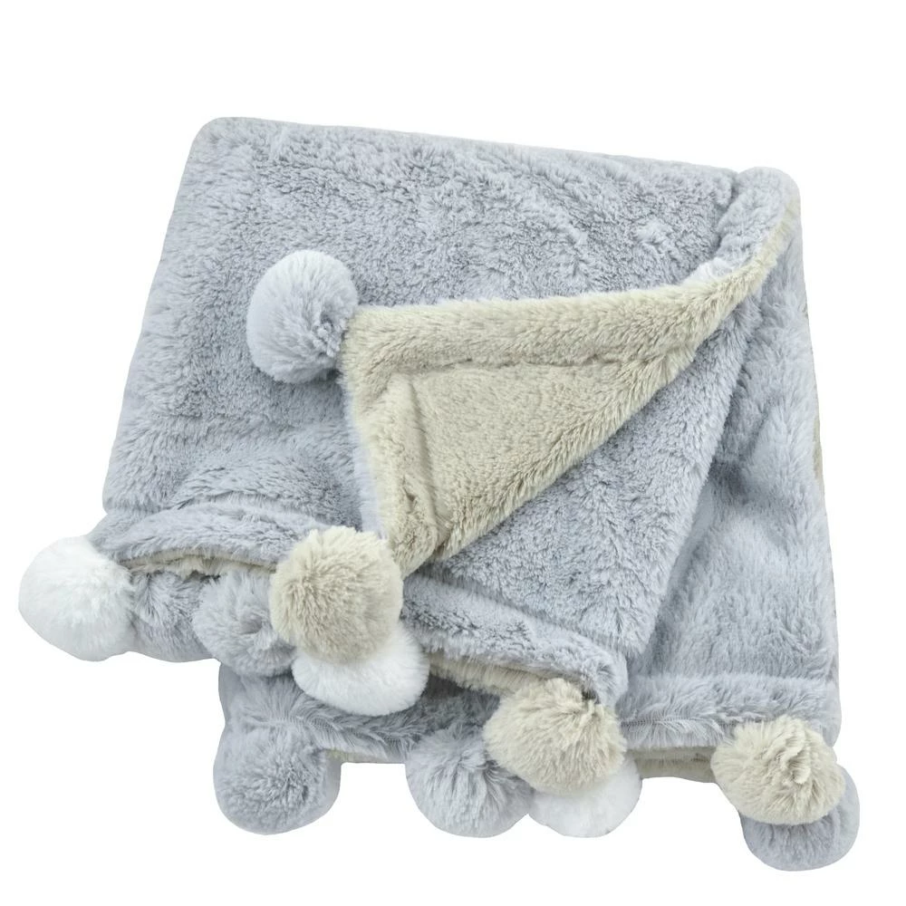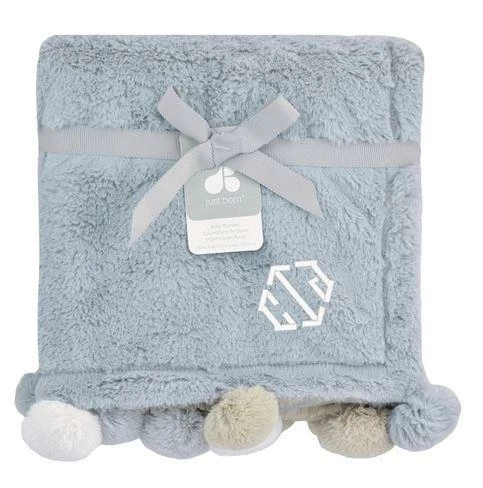 Add your own special touch with our customized embroidery services! Pick between a variety of color coordinated threads to embroider a name, due date, monogram, or sweet message of your choice. The Just Born® Cuddle Plush Pom Pom Blanket in grey is made for warmth and comfort. Adorable designs and patterns add to this soft blanket’s style and charm. Made with cozy materials and attractive colors, this baby blanket measures a comfortable 30” x 40”. Lined with playful pom poms around the edges, a Cuddleplush front in neutral tones gives this snuggly blanket its ultra-luxurious feel.