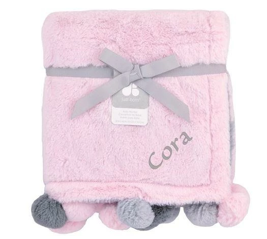 Add your own special touch with our customized embroidery services! Pick between a variety of color coordinated threads to embroider a name, due date, monogram, or sweet message of your choice. The Just Born® Cuddle Plush Pom Pom Blanket in pink is made for warmth and comfort. Adorable designs and patterns add to this soft blanket’s style and charm. Made with cozy materials and attractive colors, this baby blanket measures a comfortable 30” x 40”. Lined with playful pom poms around the edges, a Cuddleplush front in pink tones gives this snuggly blanket its ultra-luxurious feel.