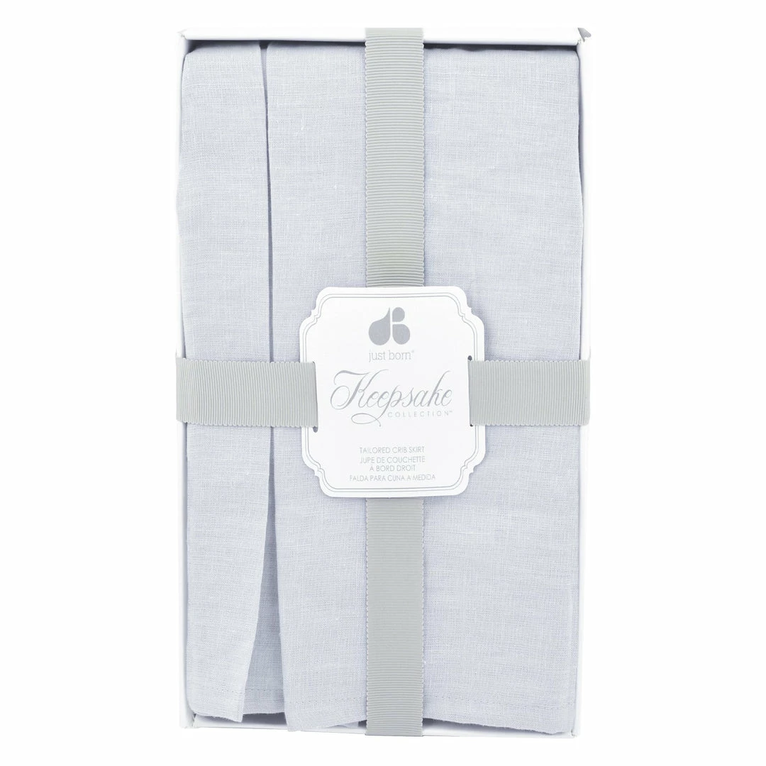 This luxurious tailored dust ruffle beautifully defines your baby’s crib with classic detail. Our linen crib skirts are made with 100% washed linen that is gently washed for soft texture and graceful draping. The soft gray hue lends a subtly sophisticated sense of style that flows seamlessly with your home. It coordinates perfectly with vintage-inspired bedding from the Keepsake Collection by Just Born®.