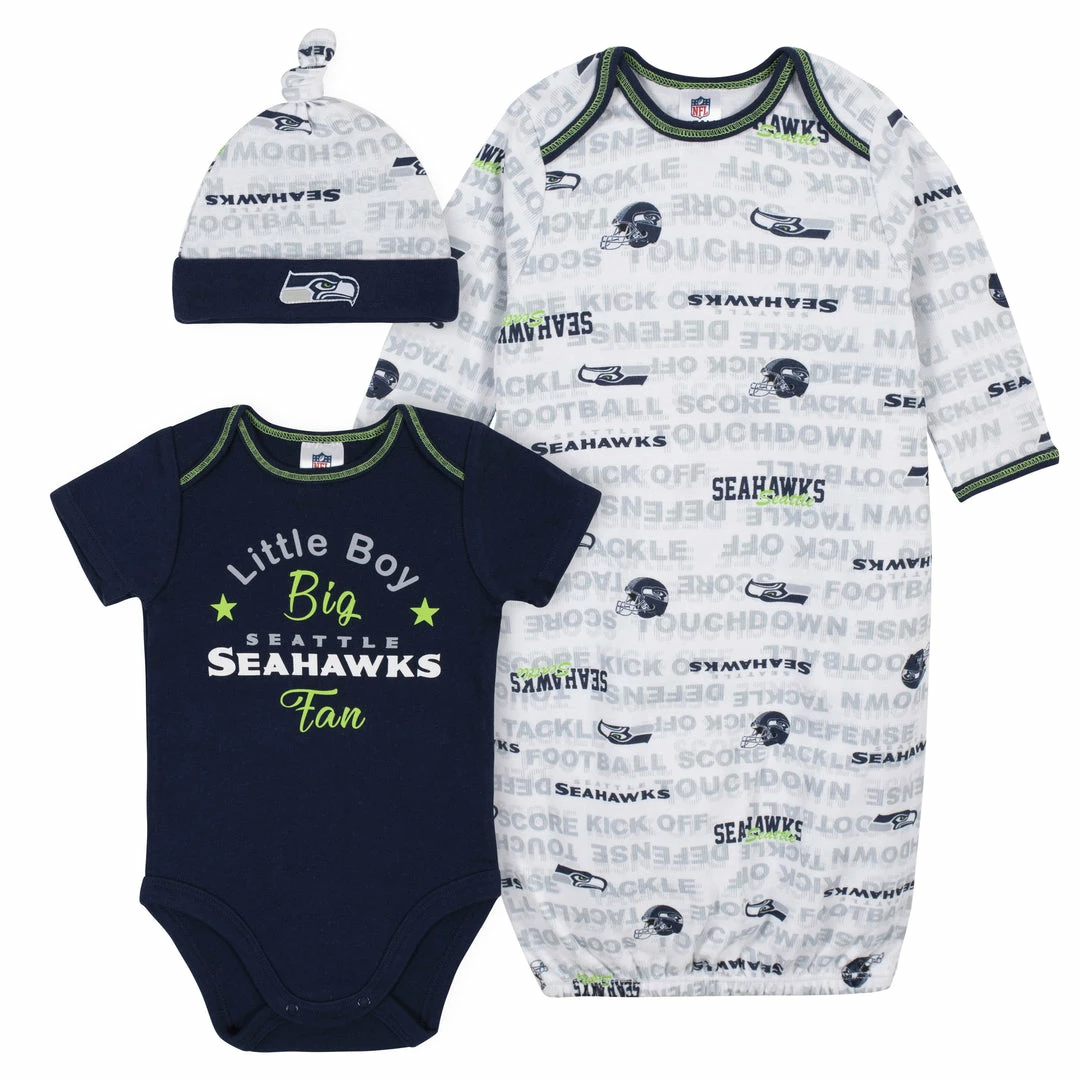 Be the first to review “Flash Sale ๐ NFL Baby Boys 3-Piece Seattle Seahawks Bodysuit, Gown, And Cap Set ๐ฏ” Cancel reply