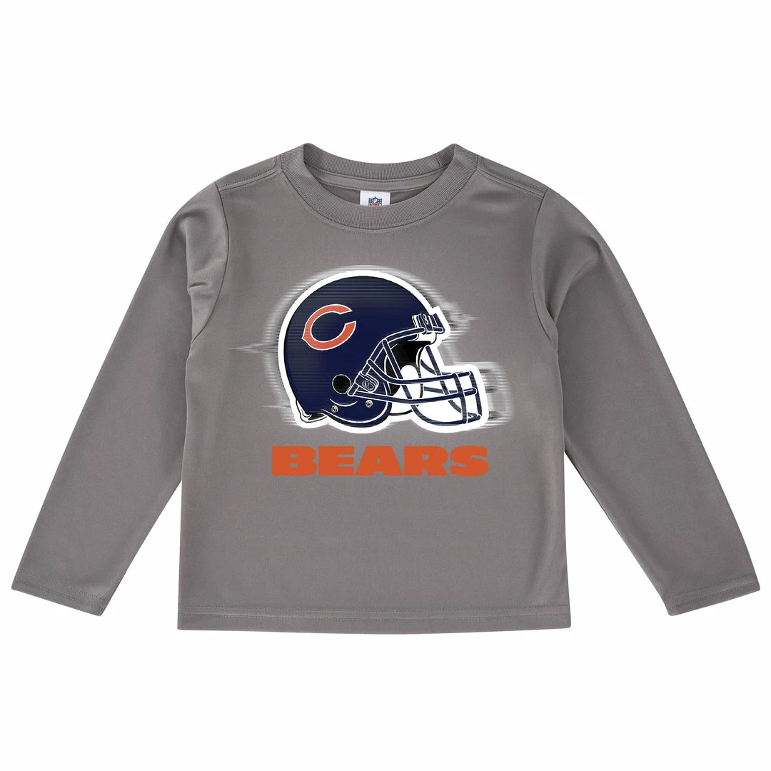 He’ll be ready to cheer on the team with this long sleeve logo tee! This baby boys’ officially licensed Chicago Bears is made with a soft poly interlock which is comfy and easy to clean. The screen print Bears logo is featured front and center.