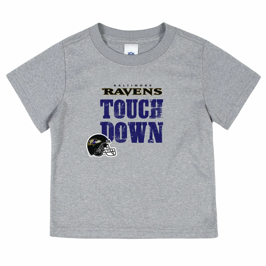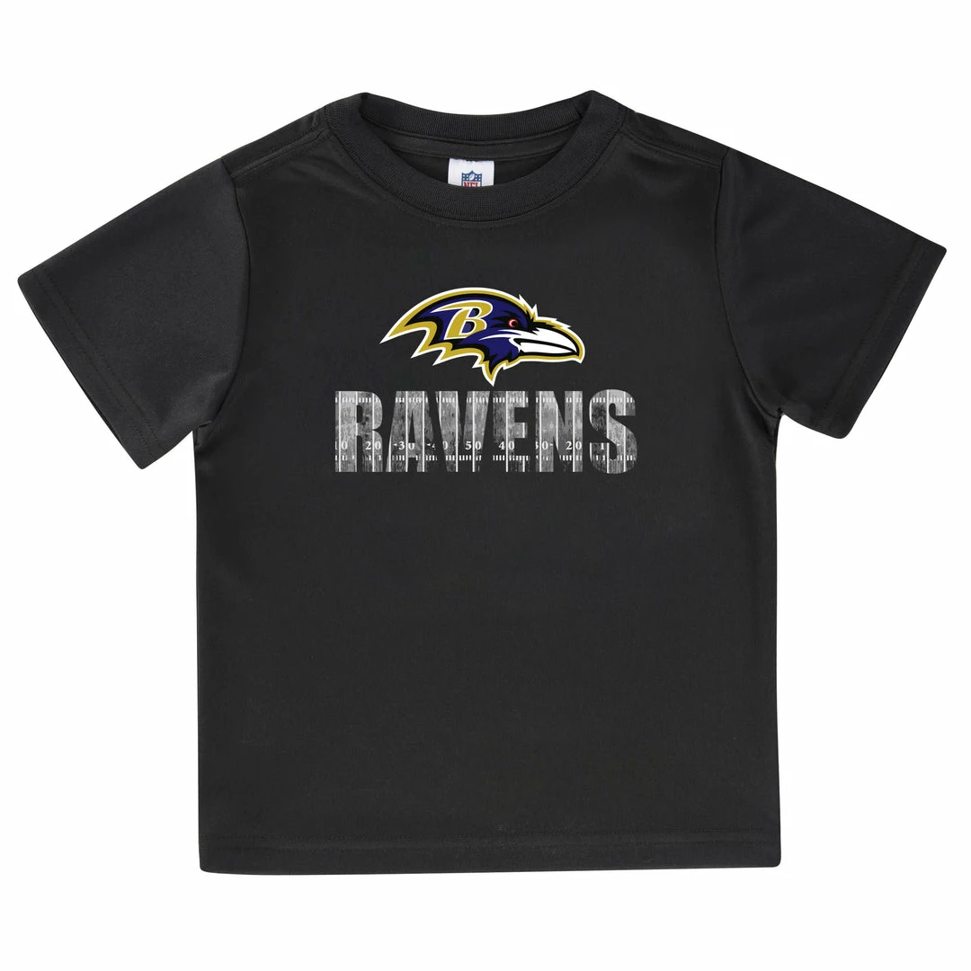Even the smallest family members can get in the football spirit with our officially licensed NFL Ravens tees. This product contains Repreveยฎ polyester made from recycled plastic bottles (or recycled content). Products made with Repreve help to conserve energy and natural resources. And, gives you another great reason to recycle. These tees feature comfy, casual crew necks to keep your little one comfortable throughout the entirety of the game (and the whole day long!). The screen print team logos are bright and bold, featured front and center on the t-shirts. Theyโre the perfect tees for warm game days and cool games days, as they may be worn comfortably all on their own or layered over to keep warm. These tees are machine washable to take care of any game-time spills. This pack contains three tees.