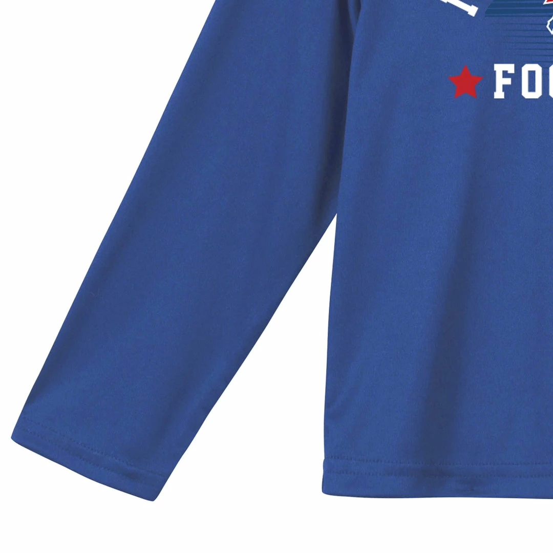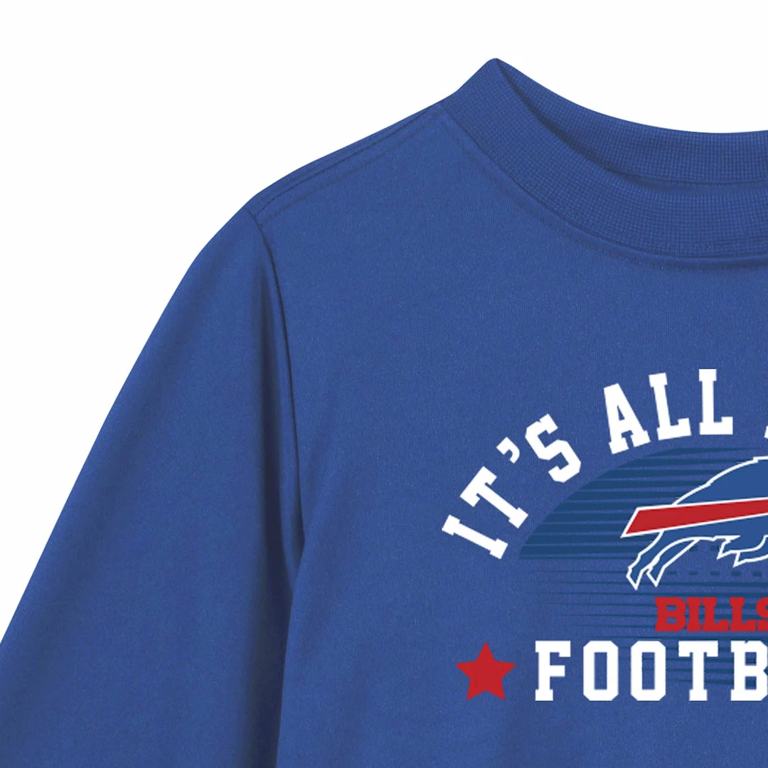 Come on, Bills! Get the smallest family members ready to cheer with our officially licensed NFL long sleeve tee. This product contains Repreveยฎ polyester made from recycled plastic bottles (or recycled content). Products made with Repreve help to conserve energy and natural resources. And, gives you another great reason to recycle. The tee features a comfy, casual crew neck to keep your little one comfortable throughout the entirety of the game (and the whole day long!). The screen print team logo is bright and bold and is featured front and center on the t-shirt. This t-shirt is machine washable to take care of any game-time spills.