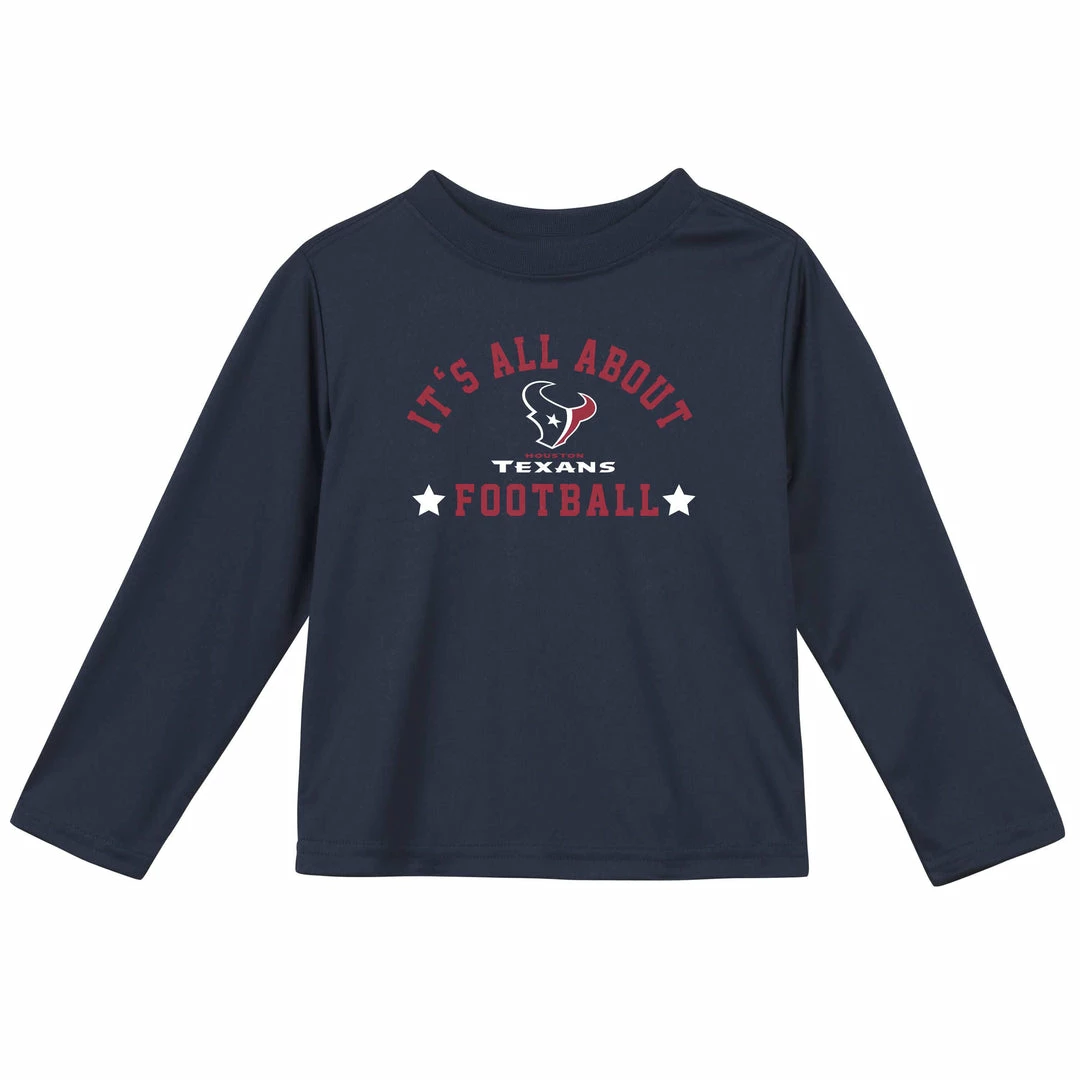 Come on, Texans! Get the smallest family members ready to cheer with our officially licensed NFL long sleeve tee. This product contains Repreve® polyester made from recycled plastic bottles (or recycled content). Products made with Repreve help to conserve energy and natural resources. And, gives you another great reason to recycle. The tee features a comfy, casual crew neck to keep your little one comfortable throughout the entirety of the game (and the whole day long!). The screen print team logo is bright and bold and is featured front and center on the t-shirt. This t-shirt is machine washable to take care of any game-time spills.