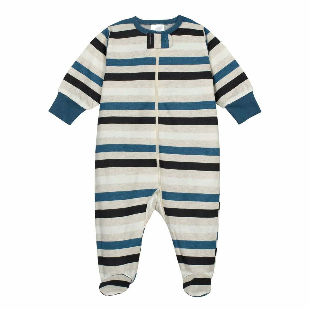 Fill babys wardrobe with contemporary style and supreme comfort. Onesies® Brand Sleep n Plays are the softest footie pajamas baby will love! These soft footies are made with 100% cotton, a comfortable fabric thats perfectly breathable to prevent irritation against babys delicate skin. Theyre appropriate to use as newborn footie pajamas as theyre made to comply with all safe sleep standards. Each Sleep n Play features a zipper down the front of the outfit to allow for easy and fast diaper changes. Atop the zipper is a safety tab with a snap to keep the zipper held in place. Onesies® Brand is committed to bringing families affordable, comfortable, and always stylish clothing.