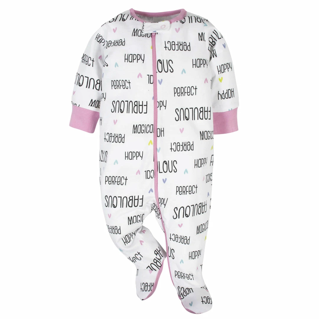 Do yourself (and baby!) a favor and stock up on Sleep ‘n Plays! These Onesies® Brand Sleep ‘n Plays are the perfect baby girl outfits for day and night. Each baby sleeper is made with soft and breathable cotton. Use these outfits as baby pajamas or as comfy loungewear. Each one features a zipper down the front for easy changes with a safety tab to prevent the zipper from poking and irritating baby’s chin. Layer underneath them with Onesies® Brand bodysuits when it’s cold. The cute designs and prints make these baby clothes a great gift, especially for new parents! These Sleep ‘n Plays are machine washable and machine dryable. This pack includes four Onesies® Brand Sleep ‘n Plays.