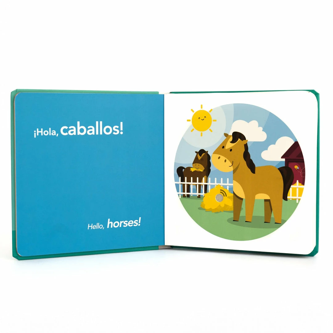 Give your child a fun head start in languages and life with this interactive reading experience. Created by bilingual moms and vetted by early language development experts, this 5-page, 5-sound book will provide hours of quality entertainment for your baby or toddler, while helping them take the first steps toward Spanish-English bilingualism. These books are perfect for supporting Spanish learning for kids from the earliest age.